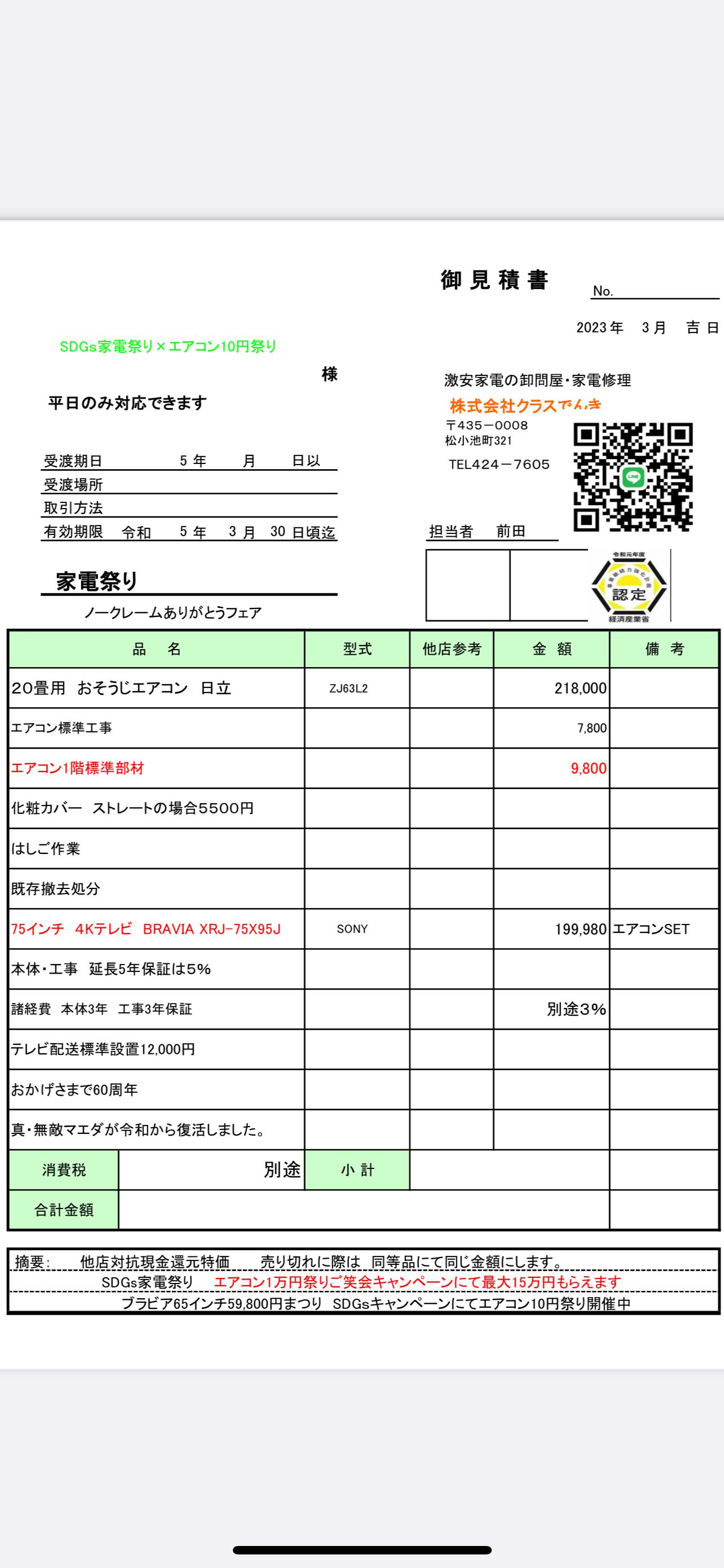 公開見積もり書を