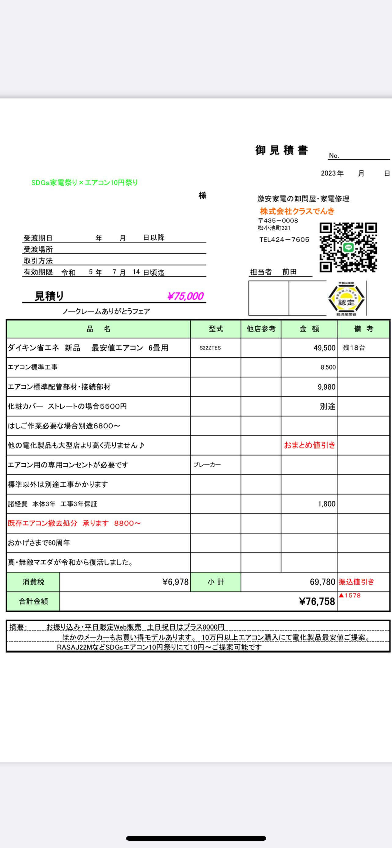 あのダイキンチャレンジデーよりお得なダイキンスーパーセール。お問い合わせいただいたお客様専用カート。