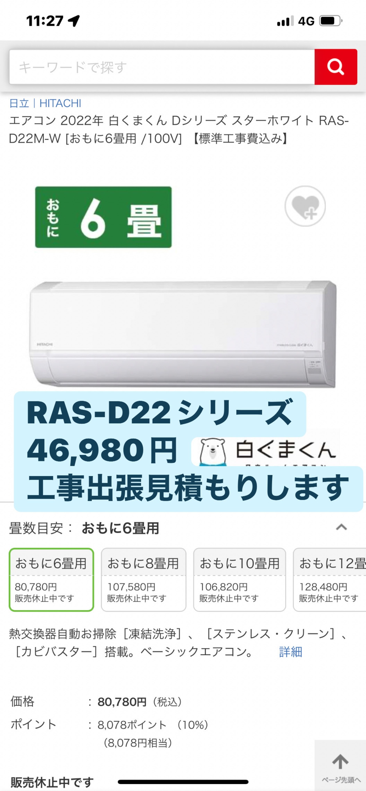 エアコン壱万円祭り 6畳用エアコンを10,000円にてご提案